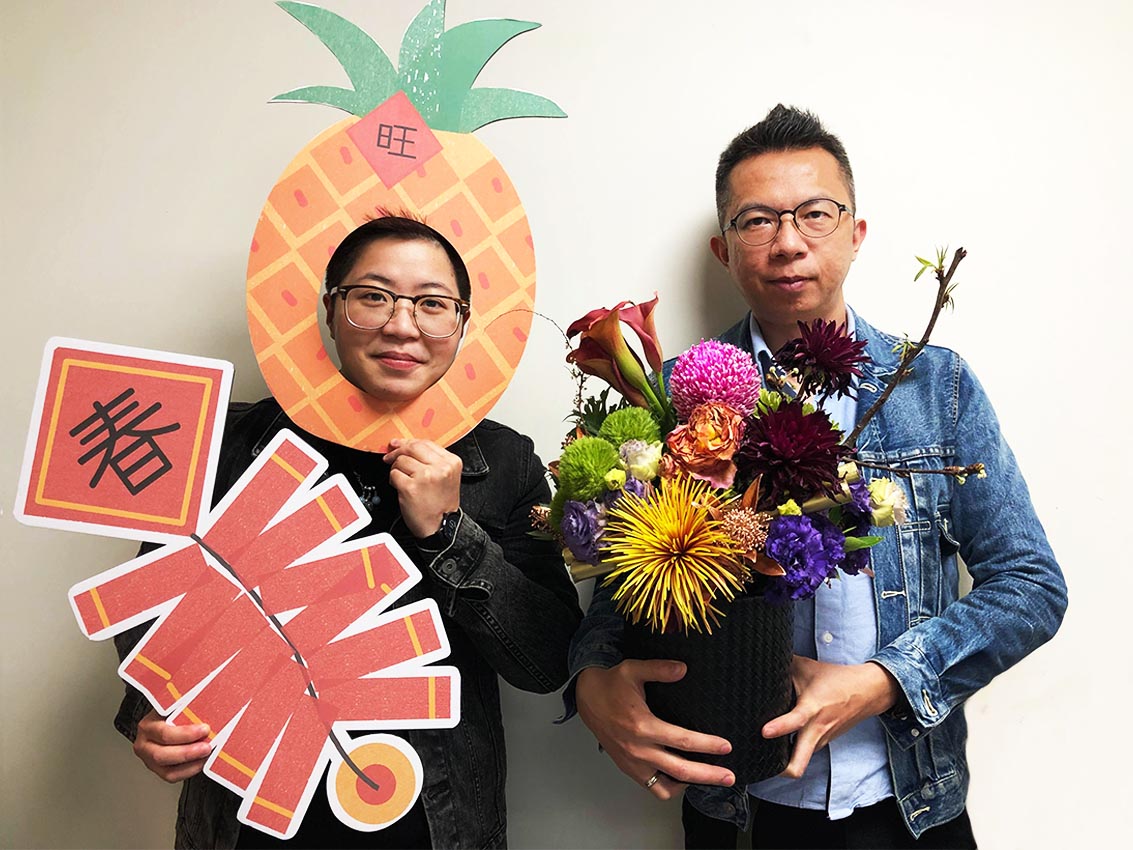 D:登登!訪談結束囉,感謝你們肯花時間與我聊聊,讓更多人認識3D繪圖設計師細膩的心思及認真的工作態度,最後就讓旺來頭小文及花團錦簇小曹與大家拜個年,下一期[享用人物]我們豬年再會囉!