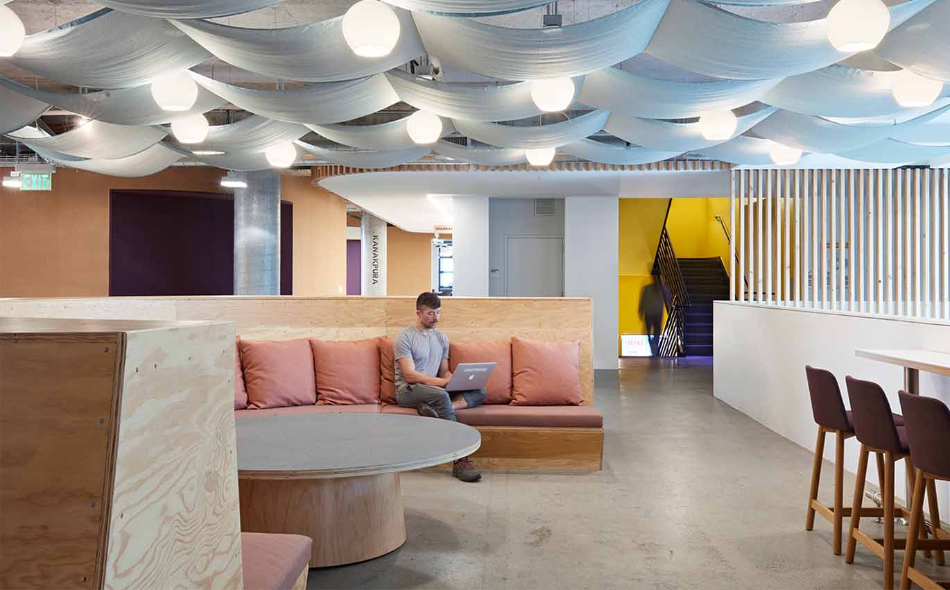 Airbnb的舊金山總部,由公司策劃小組與當地事務所WRNS的合作,延伸品牌"Belong Anywhere"的核心價值,從原始建築保留的架構中,設置多國人文風情的辦公空間,加上自然光從天窗流洩而下,讓1000多名的員工享有旅行味的悠遊自在,持續餵養員工的創意能量,更呼應Airbnb在2016年上線的新服務概念-讓在地人帶你去旅行。