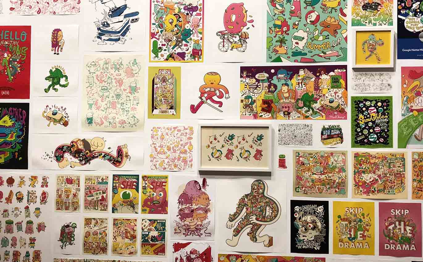 這次在台北舉辦的“Boom Boom Brosmind就要發射太空彈”的特展,將兄弟倆「Don’t say it. Do it!」的生活態度完全展現在作品中,只需換個念頭和想法,就能把無聊的日子變有趣。從展覽中可以看到兄弟倆無俚頭和古靈精怪的無限創作能量,除了平面插畫和立體產品外,更有許多與觀賞者互動的遊戲,例如:人體漢堡疊疊樂、騎乘徒腳木馬看展及復古的電動遊戲Brosmind兄弟投籃比賽等等,每個作品都有充滿童趣的巧思和豐富配色,令人流連忘返一玩再玩!