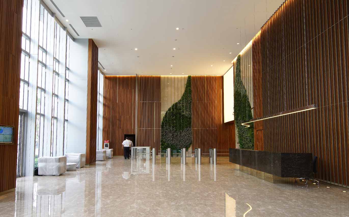 位於建國南路及民生東路交叉口的國泰辦公大樓,衡美設計了大廳至各層的公共空間,明亮寬闊的挑高大廳,捨棄傳統辦公樓常見的大理石,運用木質感及綠意的層層疊疊,營造簡約且充滿生氣的舒適感,拉近以往為追求效率的無形距離。