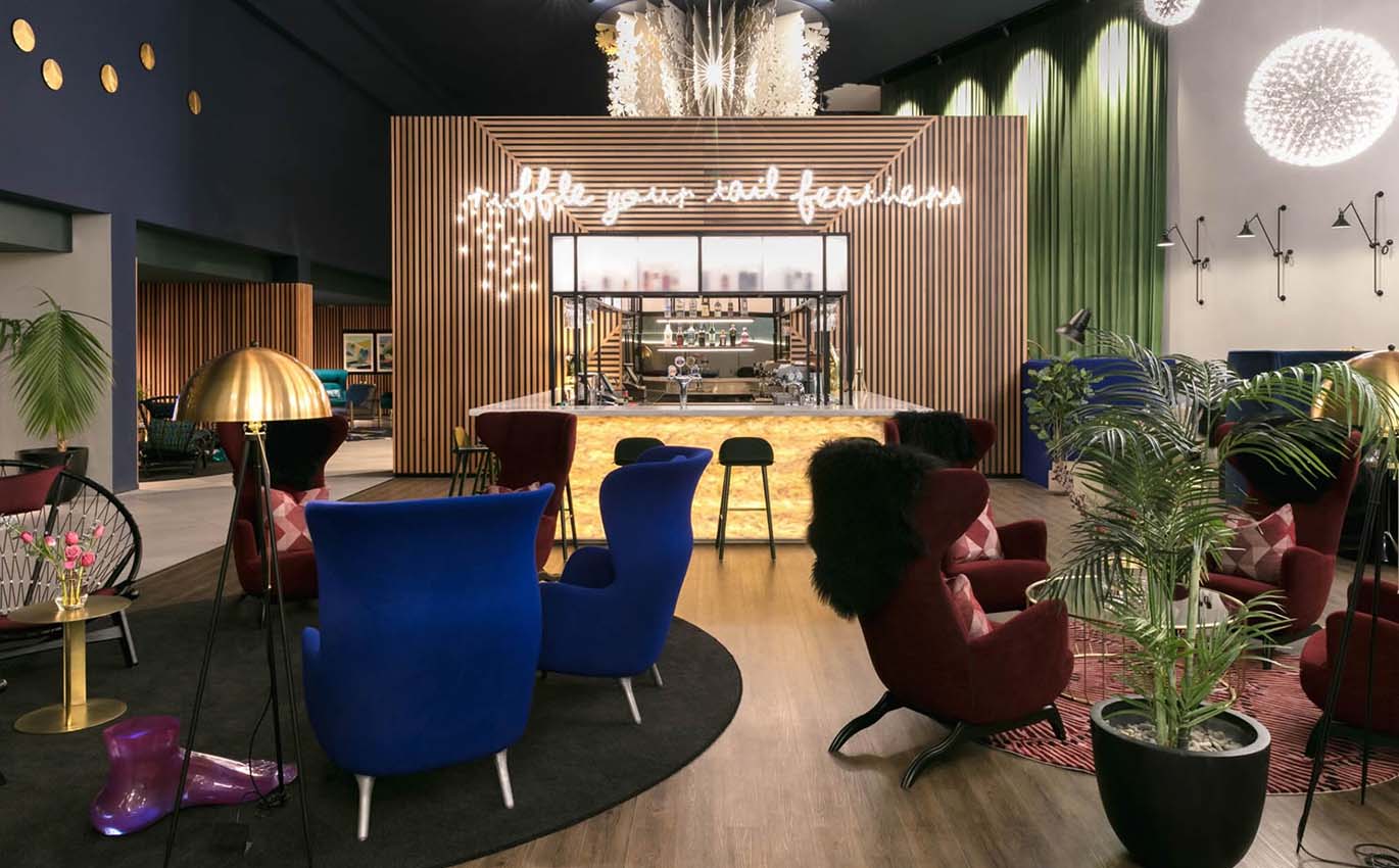 整間旅店由奧克蘭Material Creative工作室規劃設計,將Tui鳥金色、紫色與土耳其藍的彩虹般羽毛為室內裝飾主軸,在森林色調中搭配木質感,懸掛如Tui鳥金色羽毛般的燈具,加上簡潔的現代傢具及綠意,提供旅客最“紐西蘭”的用餐環境。