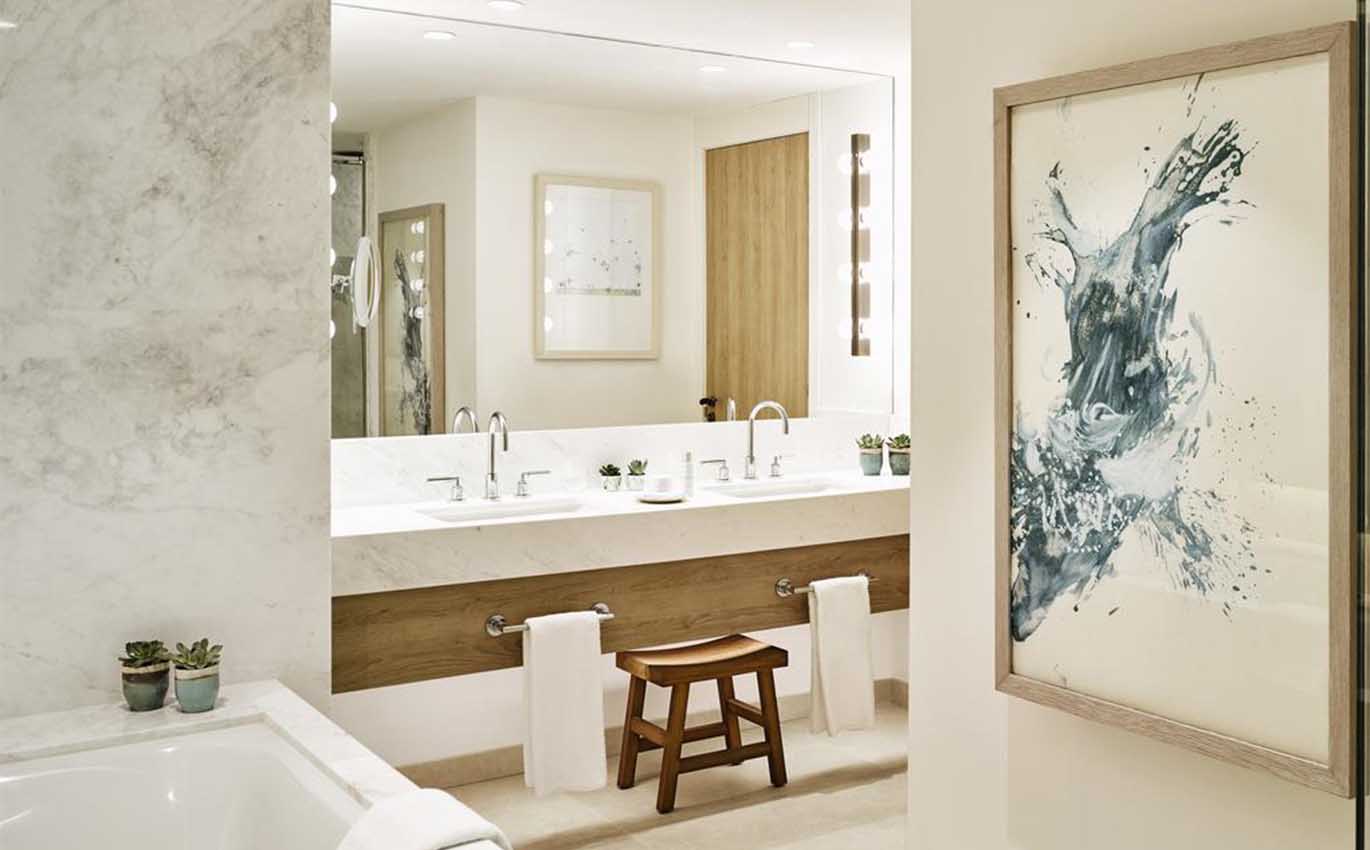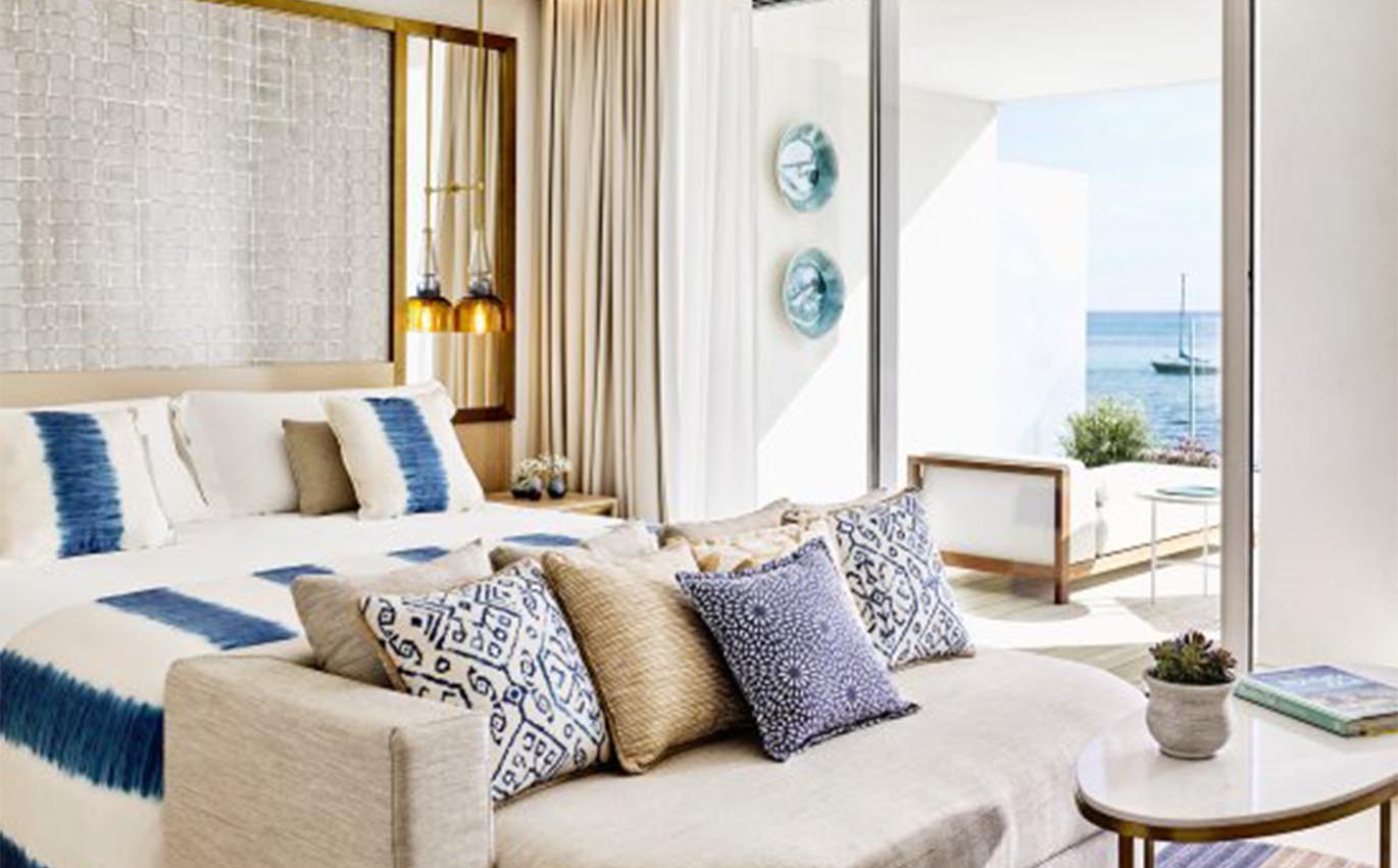 以大人的遊樂場為設計理念,這棟典雅中帶著低調奢華的度假酒店,運用原始的大理石及石頭,營造島嶼風光的自然意象,利用繩索和竹子的纖柔調性平衡石材的剛硬感。從La isla blanca白之島擷取靈感,公共區域、客房到餐廳皆以白、藍及雅致的金色為主調,讓旅客享受如夕陽灑落在Ibizan海畔般的寧靜。