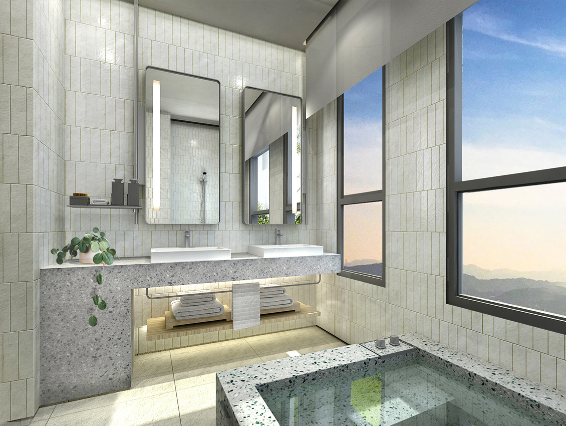 位於宜蘭礁溪的設計旅店,設計師汲取周圍的自然景觀,選用大理石、抿石子及松木等材質,並進一步將戶外天光及綠意帶進室內空間,加上金屬飾條的典雅效果,更凸顯材質的原始質感。用來區分空間的金屬格柵,除了減少視覺上的壓迫感,也能擺放書籍與植栽等達到功能性的點綴。整體空間呈現愜意的渡假氛圍,邀請旅客放慢腳步沉浸於迷人的放鬆時光。